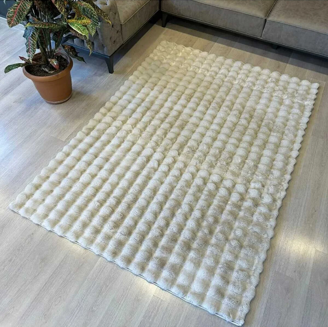 Sütlü Kahve Bubble Tavşan Serisi Peluş Halı