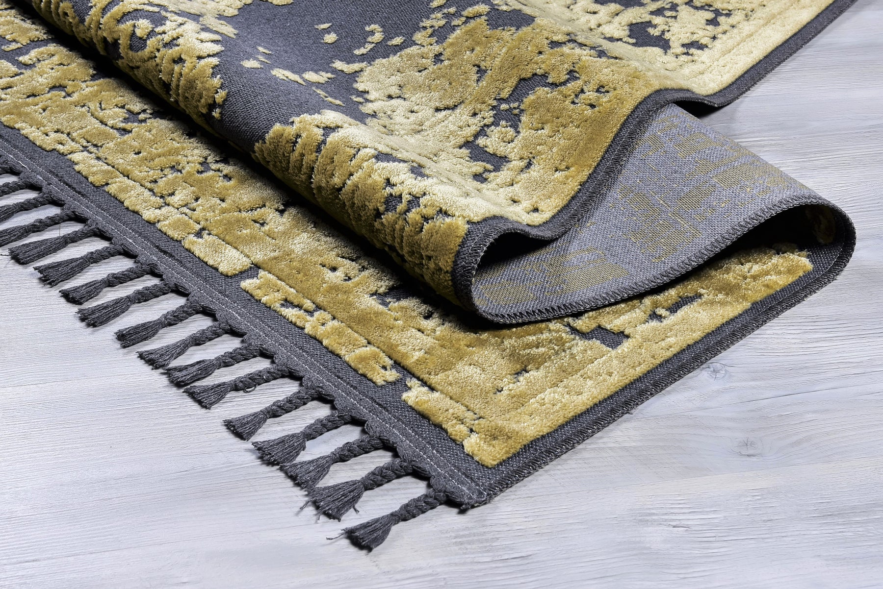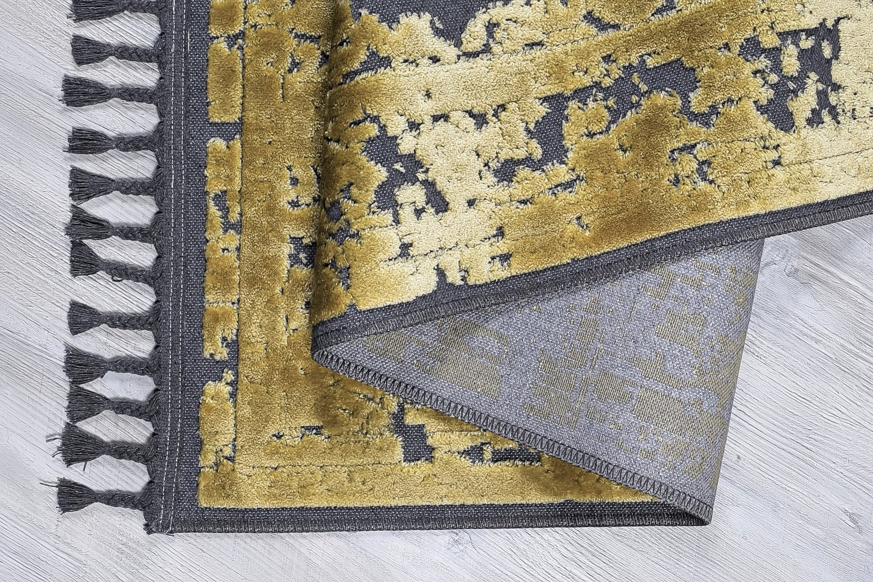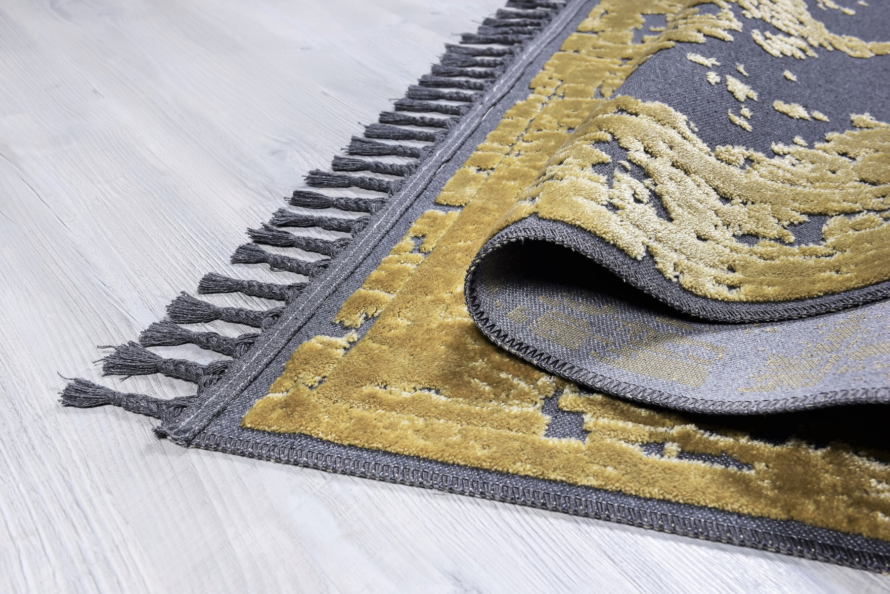 Pamuk ve Kadife tuşeli akrilik ipliklerden modern tezgahlarda üretilmiş ve el emeği özel saçaklarla süslenmiştir.