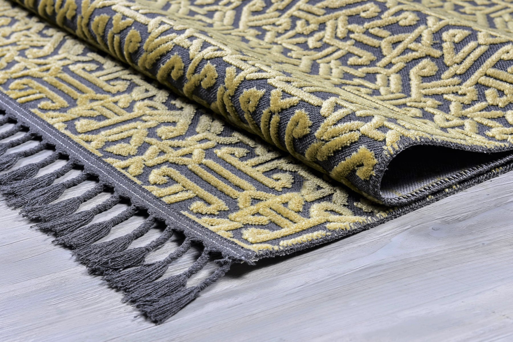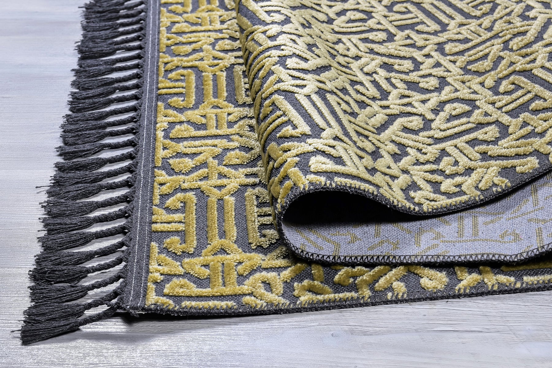Pamuk ve Kadife tuşeli akrilik ipliklerden modern tezgahlarda üretilmiş ve el emeği özel saçaklarla süslenmiştir.