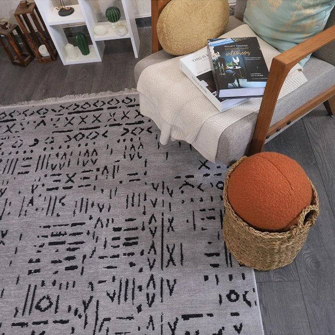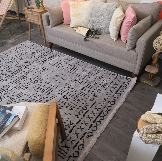 İSKANDİNAV DESEN MODERN GRİ ŞÖNİL KİLİM