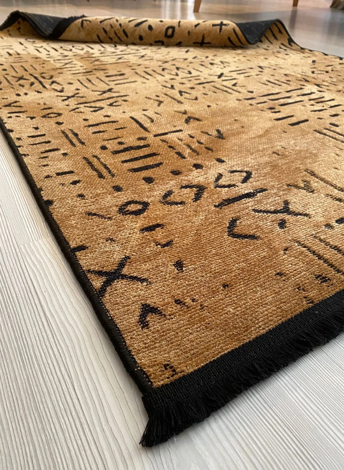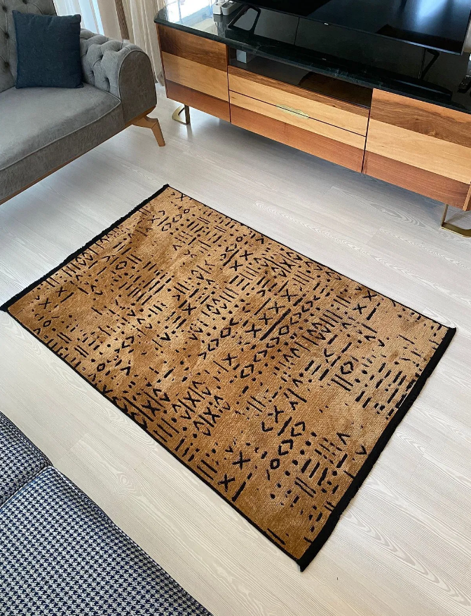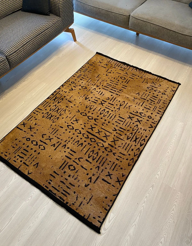 İSKANDİNAV DESEN MODERN HARDAL ŞÖNİL KİLİM