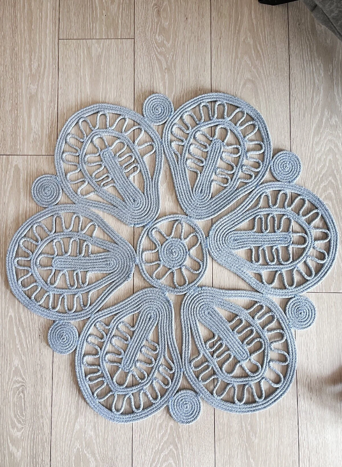 Bebe Mavisi Sisal Motifli Papatya Model Dekoratif Modern Jüt Hasır Kilim RGD004