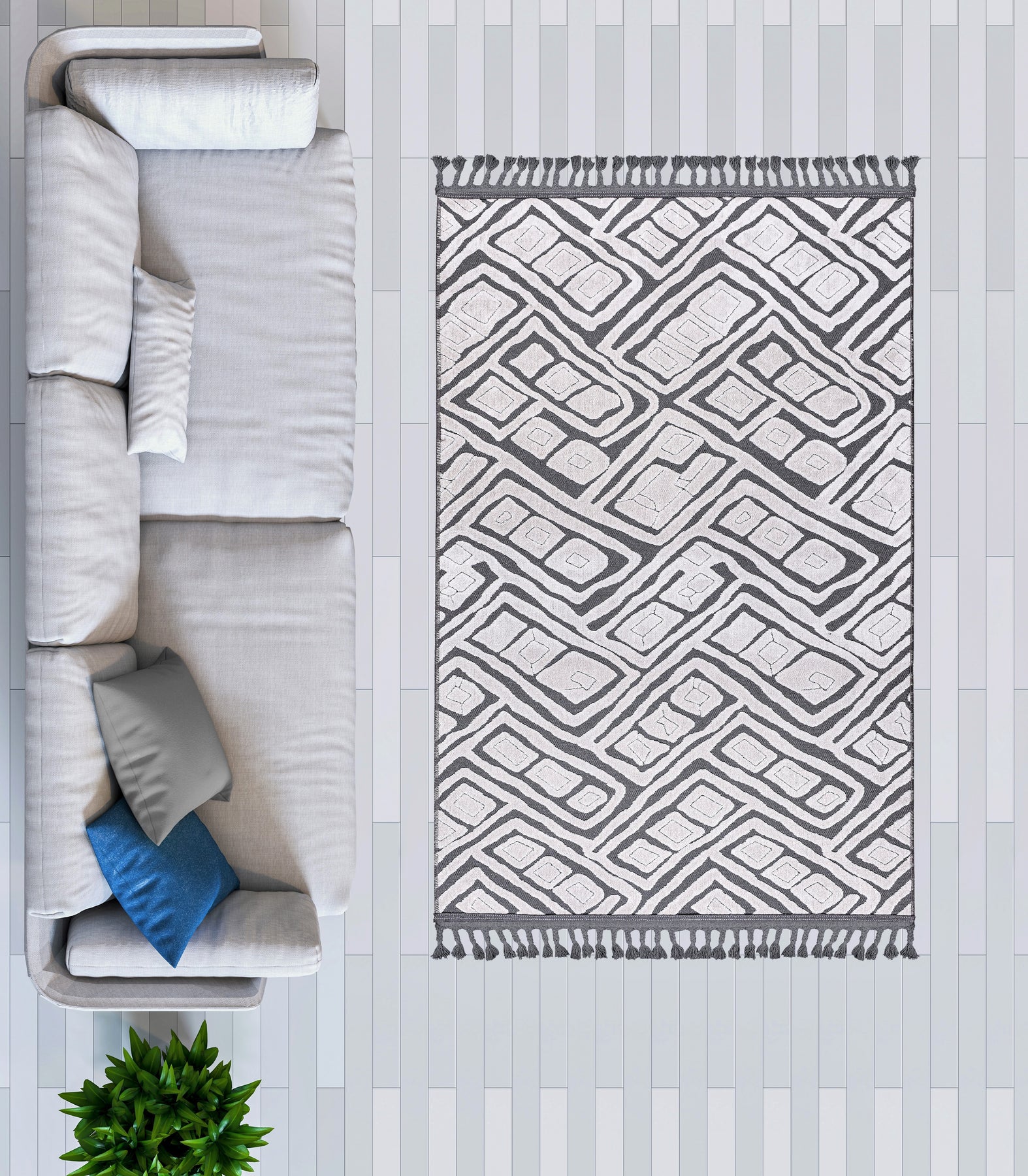 Pamuk ve Kadife tuşeli akrilik ipliklerden modern tezgahlarda üretilmiş ve el emeği özel saçaklarla süslenmiştir.