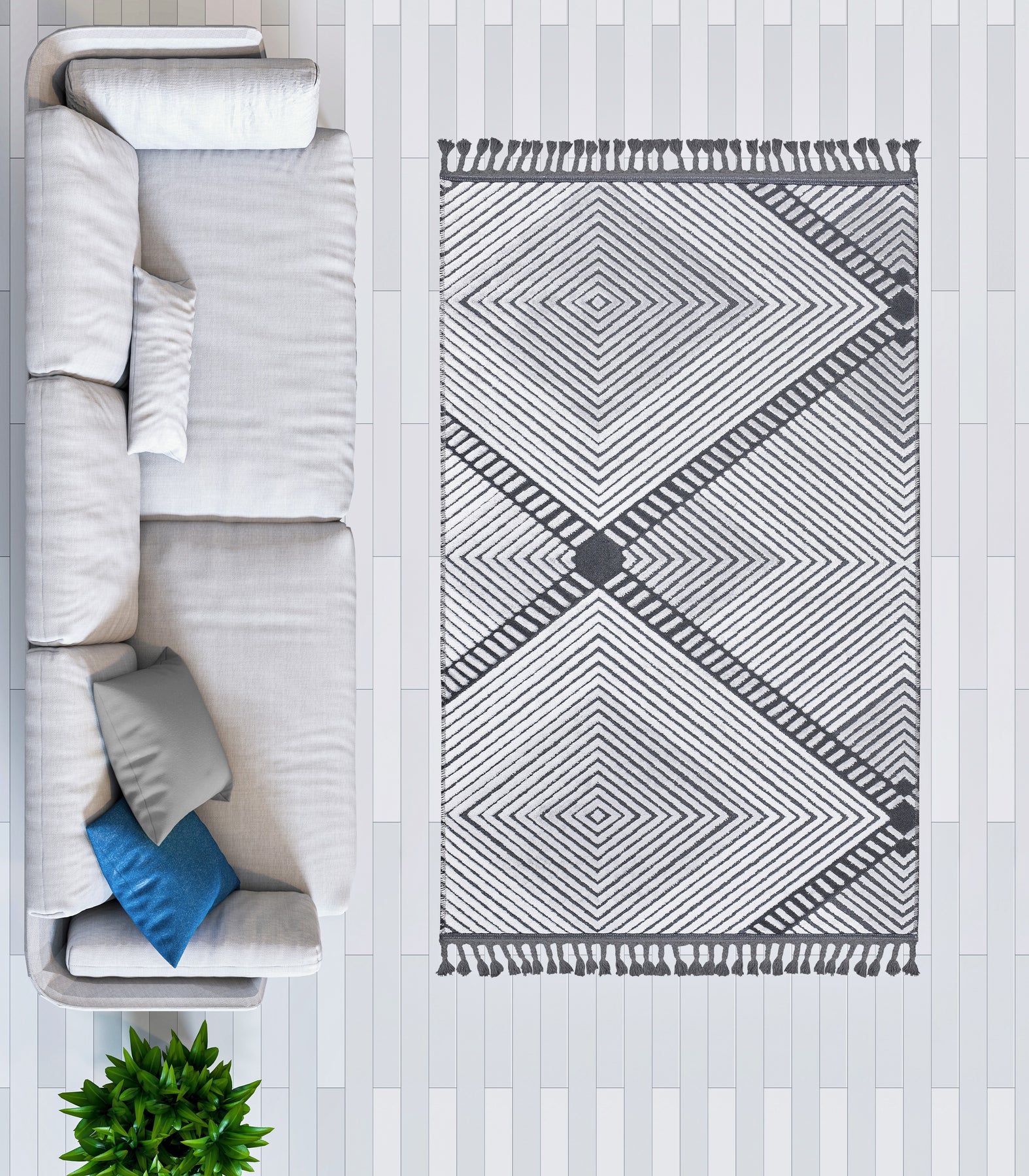 Pamuk ve Kadife tuşeli akrilik ipliklerden modern tezgahlarda üretilmiş ve el emeği özel saçaklarla süslenmiştir.