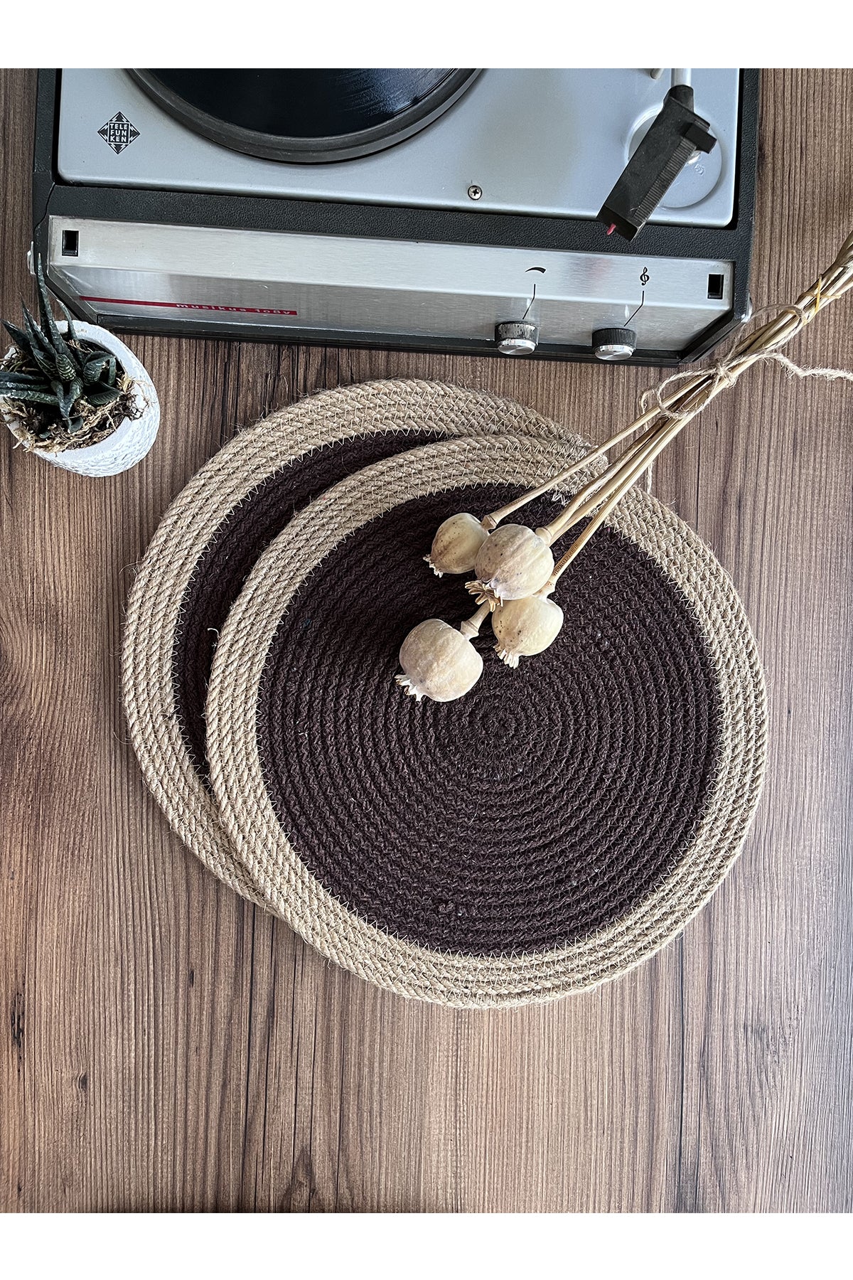 Acı Kahve/Bordürlü Acı Kahve Jüt Örme Hasır Supla