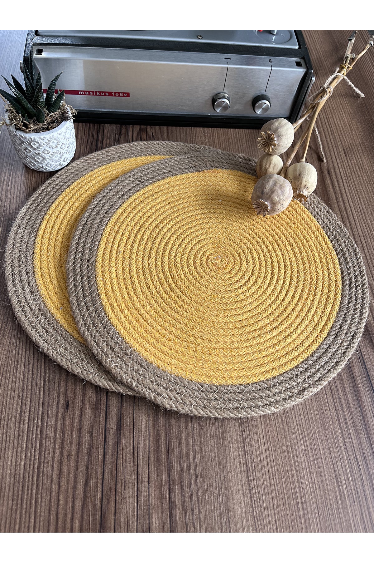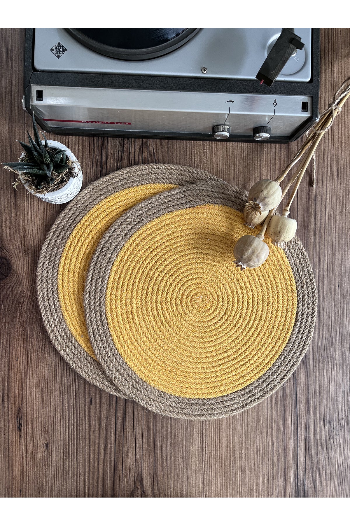 Hardal Sarı/Bordürlü Hardal Sarı Jüt Örme Hasır Supla